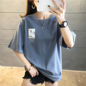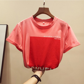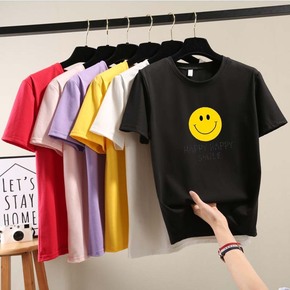 大码女式短袖t恤衫上衣一件代发韩版新款套头学生印花...