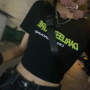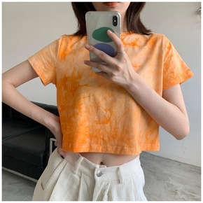 外贸女装2021夏季韩版扎染港风短裤露肚短袖t恤女...