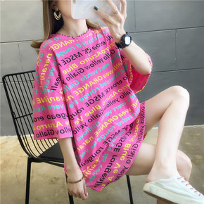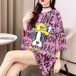 2021夏季印花韩版宽松中长款大码女士上衣时尚学生...