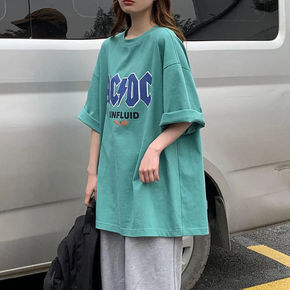 夏季2022新款韩版字母宽松显瘦圆领短袖T恤上衣女...
