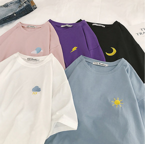 亚马逊2021夏季新款女原宿bf宽松韩版学生刺绣原...