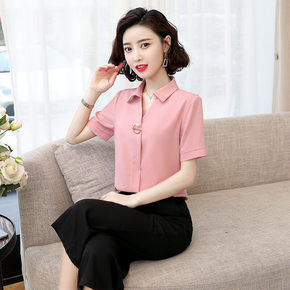 短袖衬衫女夏季女装新款韩版修身职业装百搭上衣白色衬...