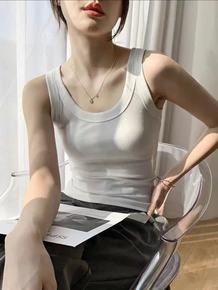 夏季宽松白色无袖打底老汉衫上衣女小吊带纯色u领背心...