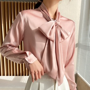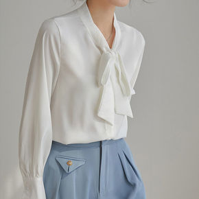 飘带蝴蝶结绑带白衬衫女设计感小众法式别致长袖上衣职...