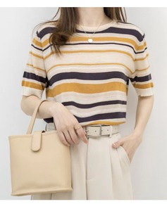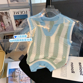 撞色条纹polo领无袖针织衫女夏2022新款法式别...