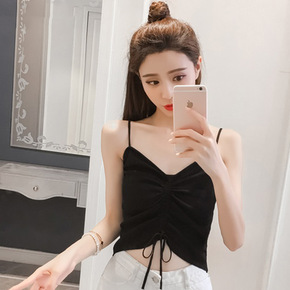 吊带背心女短款夏外穿显瘦内搭抽绳美背领冰丝针织背心...