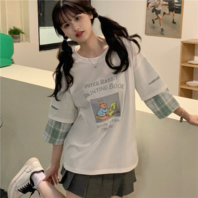 2022夏季新款洋气显瘦冰丝短袖T恤女微胖妹妹减龄...