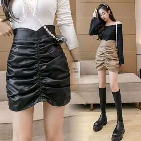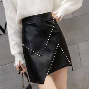 辣妹冬装裙皮裙女2021新款时尚钉珠高腰a字半身裙...