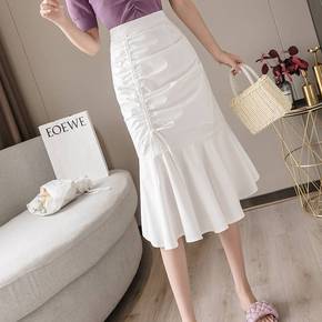 鱼尾裙半身裙2021夏季新款高腰字裙时尚抽绳不规则...