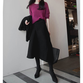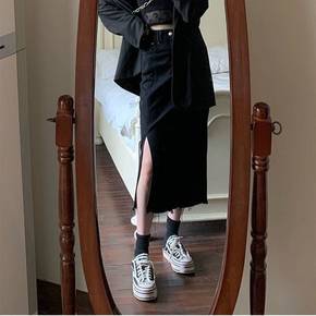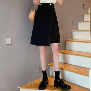 半身裙 女小个子半身裙女高腰字裙黑色裙子秋冬不规则...