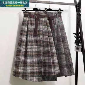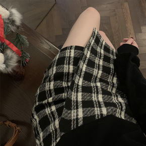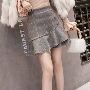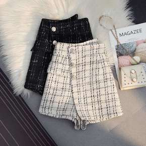 不规则高腰半身裙女秋冬新款韩版小香风格子短裙气质显...