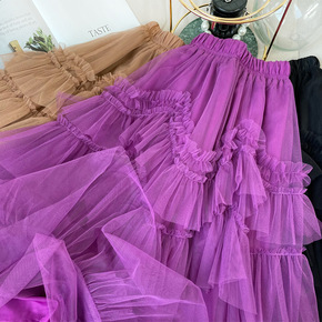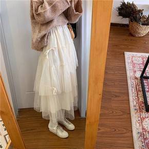 2021不规则网纱裙韩版百搭裙子蛋糕裙超仙长裙半身...