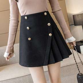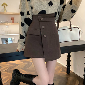 短裙女冬毛呢半身裙女秋冬新款韩版高腰不规则短裙子百...