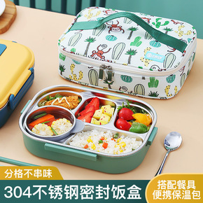 便当盒便携带盖防漏304不锈钢饭盒分隔学生餐盒上班...