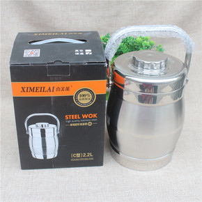 无磁不锈钢加厚C型鼓型保温提锅2.2L...