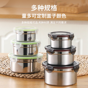 食品级保鲜盒冰箱专用 日式商用厨房圆形密封304不...