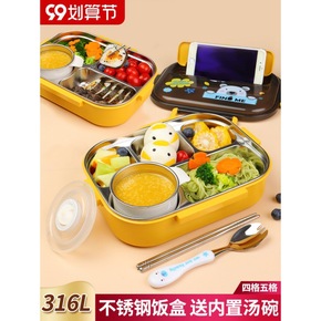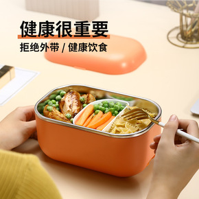 批发不锈钢注水加热饭盒学生便携分格便当盒创意新款1...