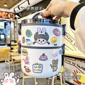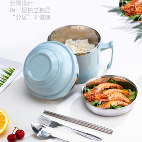 不锈钢饭盒学生快餐杯双层分格泡面碗成人便当盒加厚食...