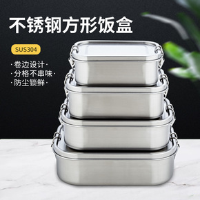 304不锈钢饭盒分格方形隔饭堂砂光饭盒两格饭盒味盒...