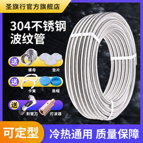 4分进出水管304不锈钢波纹管冷热防爆家用软管水器...