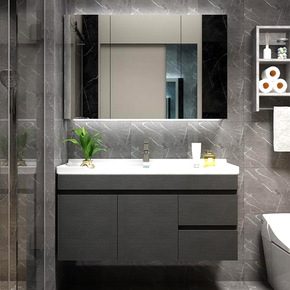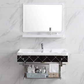 卫浴室柜组合洗手池洗脸卫生间吊柜家用一体盆黑白极简...