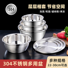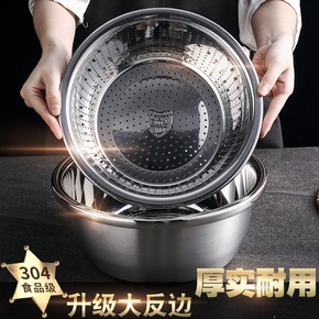 304不锈钢盆家用淘米筛盆子两件套漏水盆圆形汤盆脸...