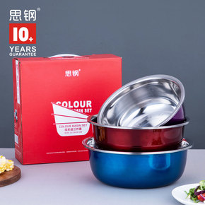 不锈钢盆三件套盆子家用洗菜盆加厚加深厨房打蛋和面套...