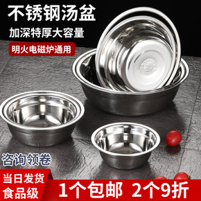 不锈钢盆碗304食品级汤盆加厚加深小盆子家用厨房铁...