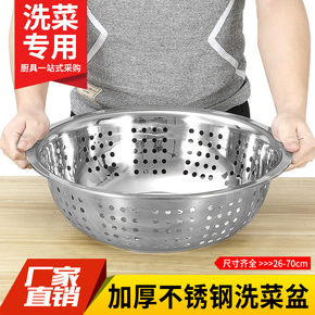 加厚不锈钢洗菜盆洗菜篮圆形大孔盆厨房家用沥水盆水果...