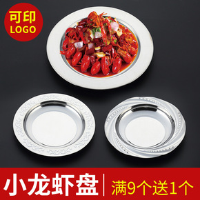 麻辣小龙虾盘子商用不锈钢浅盆圆形餐具创意大咖盘饭店...