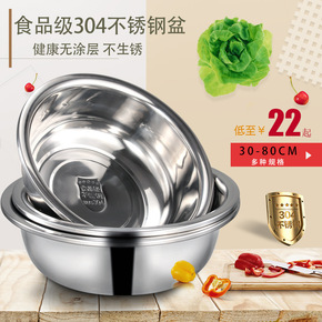 加厚食品级304不锈钢盆家用厨房大号商用特大和面洗...