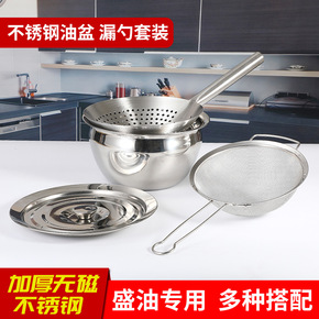 不锈钢盆圆形带盖盆提手油盆家用厨房多功能提锅调理锅...