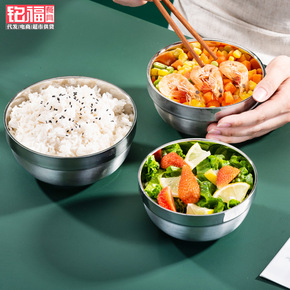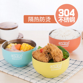 304不锈钢碗双层防烫手儿童家用饭碗学生大号食堂宿...