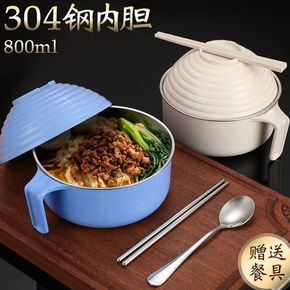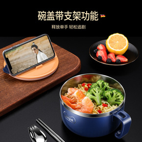 不锈钢泡面碗带盖方便面碗学生餐具套装家用碗筷单个面...
