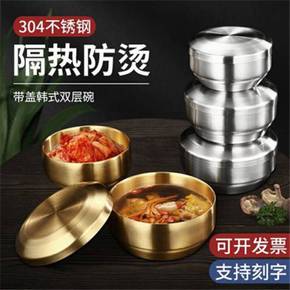冷面碗韩用不锈钢碗韩式拌饭碗吃面泡面碗双层隔热大汤...