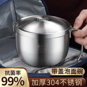 304不锈钢泡面碗带盖保温碗宿舍用学生饭盒杯 带手...