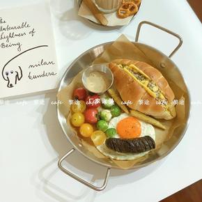 ins不锈钢双手柄海鲜锅家用野餐盘子不锈钢锅韩国西...
