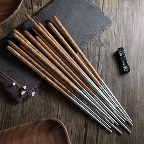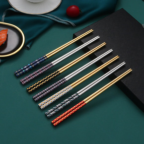 亚马逊304不锈钢筷子 钛金筷套装 高档酒店筷 不...