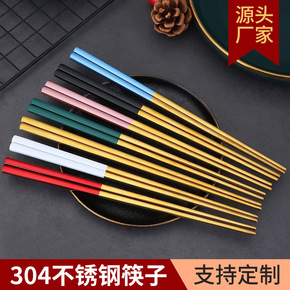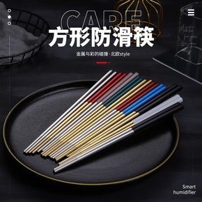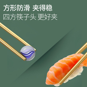 北欧304不锈钢筷子 网红金色家用酒店儿童防滑方形...