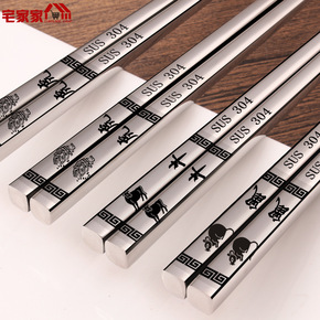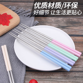 304不锈钢筷子家用防滑韩式方筷酒店筷饭店筷快子定...