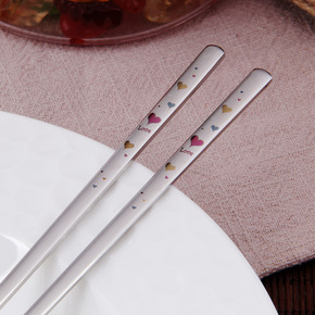 韩国激光刻花心形不锈钢筷子原装进口304不锈钢餐具...