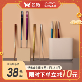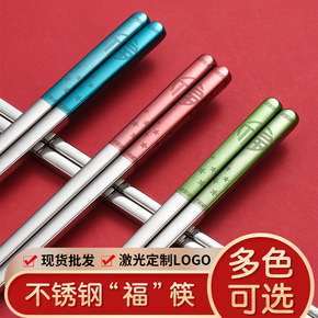 304不锈钢中式镀钛筷子礼盒装福字筷激光防滑全方公...