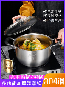 304不锈钢汤锅加厚小蒸锅燃气电磁炉锅具家用多功能...