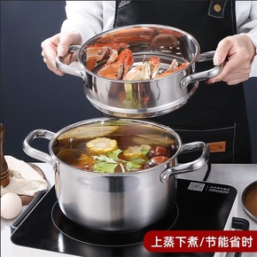 不锈钢锅汤蒸锅蒸锅火锅家用煮粥锅具电磁炉汤锅燃气不...