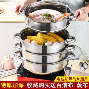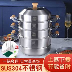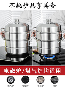 蒸锅家用304不锈钢双层加厚大容量蒸煮两用锅电磁炉...