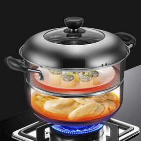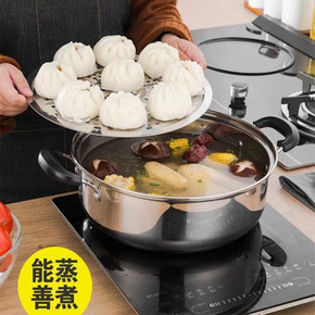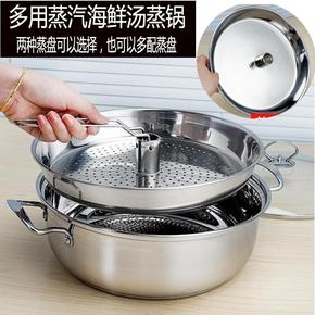 特厚不锈钢火锅海鲜蒸汽火锅清汤熬汤锅蒸煮锅蒸锅电磁...