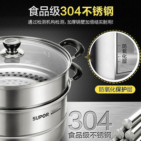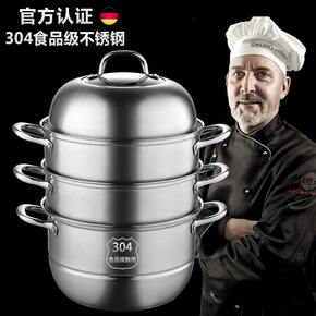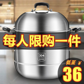 蒸锅特大号304不锈钢食品级家用三层大容量加厚36...