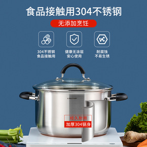 304加厚不锈钢汤锅家用煮粥锅煲汤锅火锅奶锅蒸锅燃...