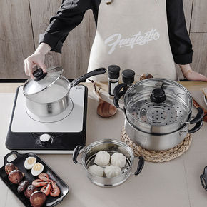 加厚不锈钢蒸锅家用汤锅奶锅小蒸锅辅食锅火锅厨房燃气...