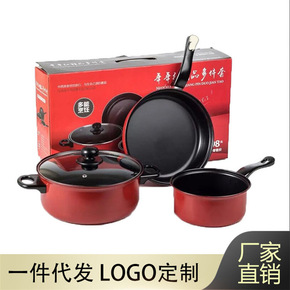 中国红三件套不粘锅炒锅套锅 银行开业店铺实用活动礼...